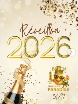 Vem virar o ano com o pé na areia, brindando à vida, à música e a momentos inesquecíveis no Beach Paradise!